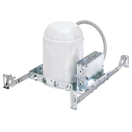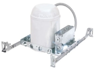 This five-inch new construction recessed lighting housing has an integral thermal protector, preventing improper installation. It's IC rated, which means it can safely be placed alongside or underneath insulation. It's also compatible with line voltage dimmers. This housing can be used in new construction or where there is access above the ceiling.