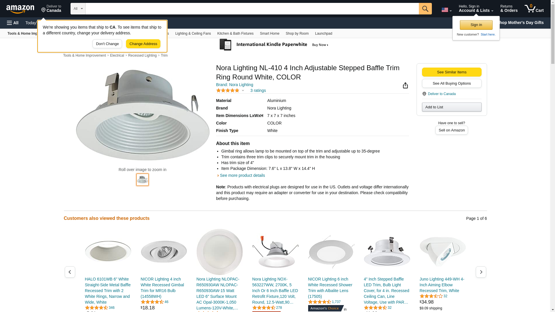Nora Lighting NL-410 4 Inch Adjustable Stepped Baffle Trim Ring Round White, Color