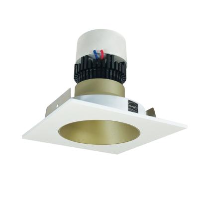 Nora 4 Inch Pearl Retrofit Square /Round Deep Cone Reflector Non-Adjustable Trim 800Lm 12W Comfort Dim 90 CRI Champagne Haze/Matte Powder White 120V Triac/ELV Dimming (NPR-4SNDCCDXCHMPW)