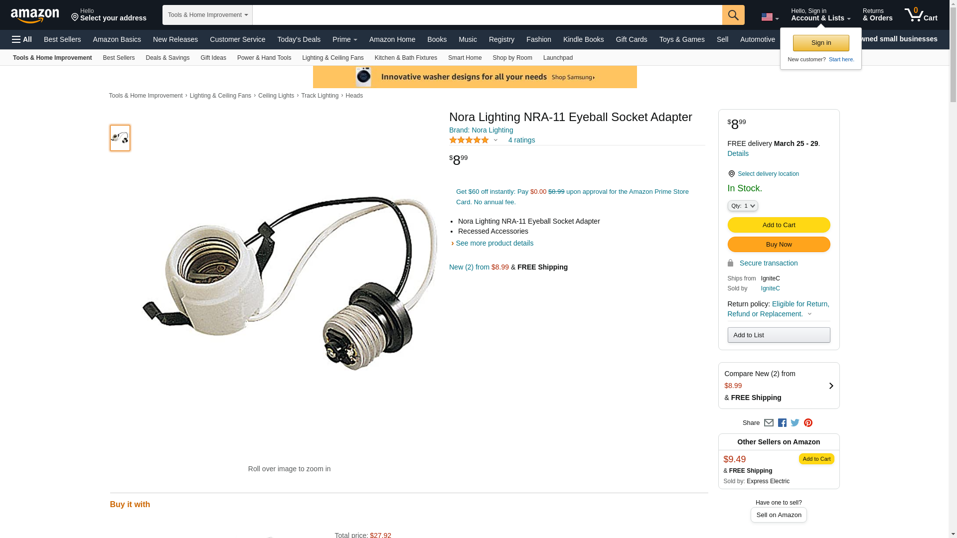![]() Lighting Supply | NRA-11 | 1 | 1 | 1 @ $5.76 | |