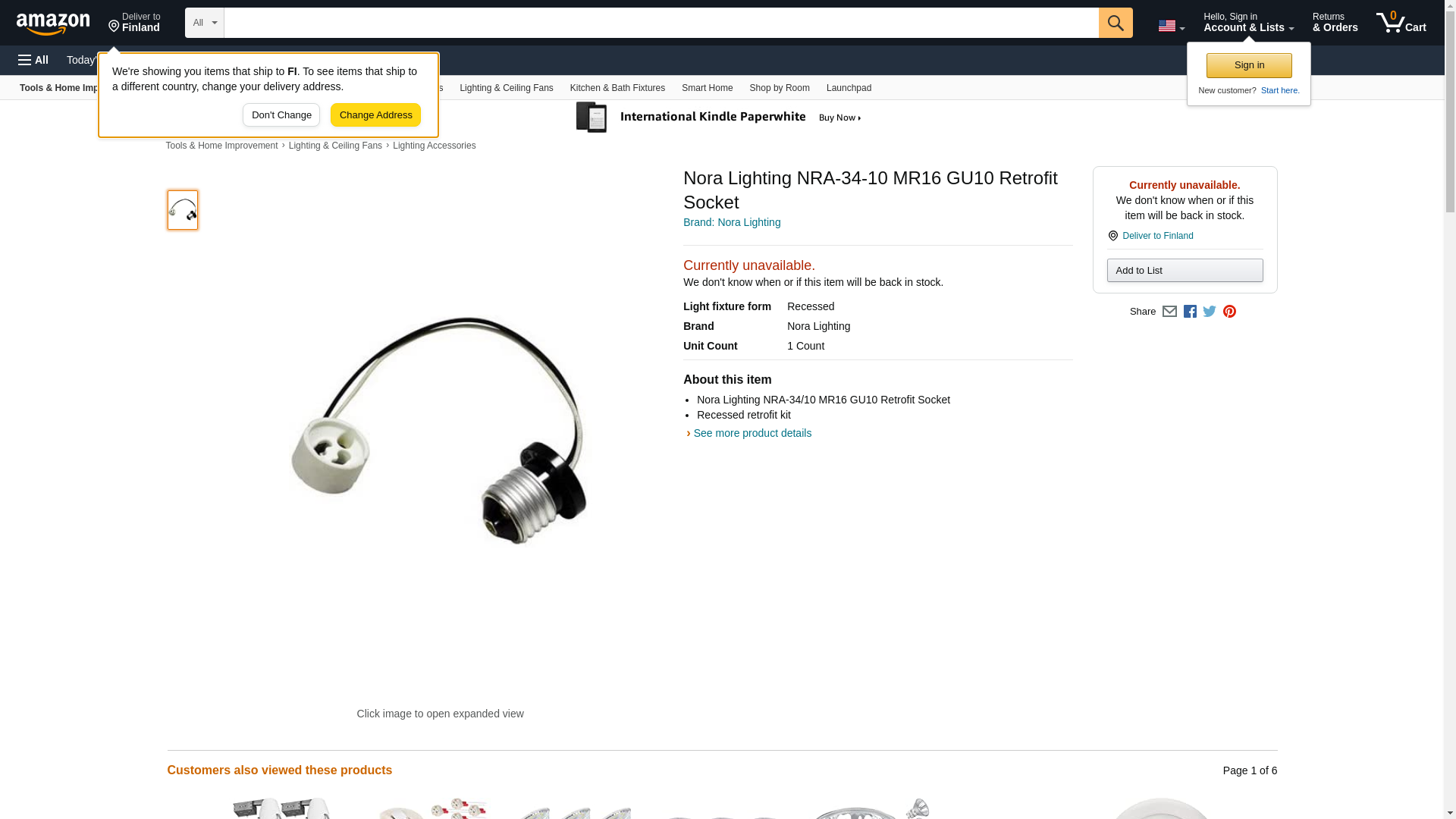 - Nora Lighting NRA-34/10 MR16 GU10 Retrofit Socket