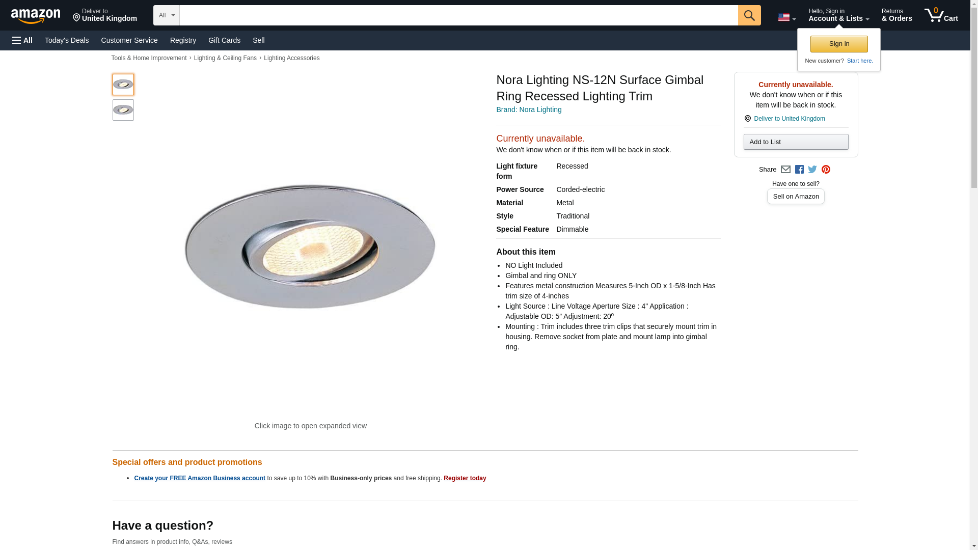 Nora Lighting NS-12N Surface Gimbal Ring Recessed Lighting Trim