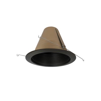 Wet location rated air-tight lensless baffle for 6" line voltage recessed housings. Includes torsion springs to mount inside housings Features Compatible with LED lamps Compatible with IC & Non-IC housings No lens required Requires (1) 150 watt GU5.3 bulb Fixture is not capable of being dimmed CUL rated for wet locations Covered under a 1 Year Limited manufacturer Dimensions Trim Size: 6" Height: 5-1/4" Width: 7-1/8" Depth: 7-1/8" Product Weight: 1 lbs Electrical Specifications Number of Bulbs: 1 Max Watts Per Bulb: 150 watts Bulb Base: GU5.3 Bulb Included: No