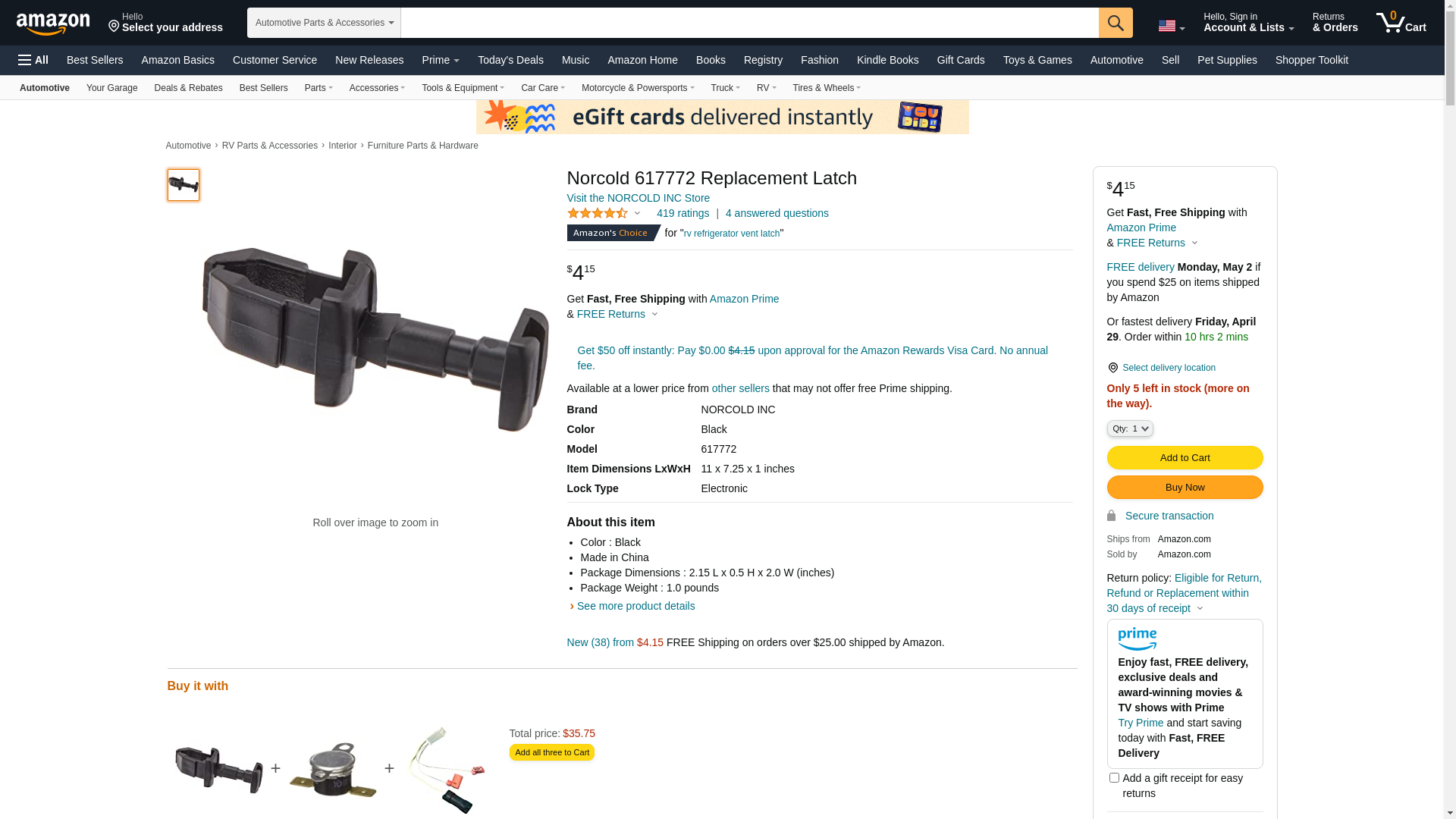| rvpartsexpress.com | 617772 | 1 | 20 | 1 | 1 @ $4.13 |