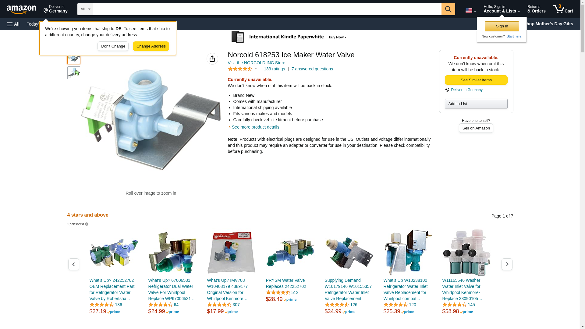 Norcold 618253 Ice Maker Water Valve