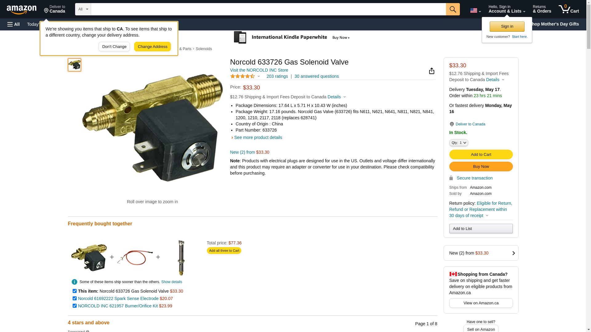 633726 by NORCOLD - NORCOLD GAS VALUE SOLENOI