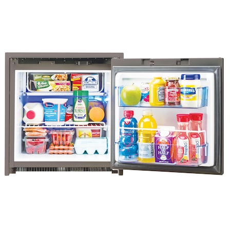 - Refrigerator / Freezer; Single Compartment Refrigerator With Freezer; Proud Mount/ Flush Mount Without Additional Hardware; 2.7 Cubic Foot; 18-1/2 Inch Width x 21-1/16 Inch Depth(Proud Mount) 23.19 Inch Depth(Flush Mount) x 20-1/2 Inch Height; 0.37 Amps At 230 Volt AC/ 0.7 Amps At 120 Volt AC/ 2.5 Amps At 12 Volt DC/ 3 Amps At 12 Volt DC/ 1.3 Amps At 24 Volt DC/ 1.5 Amps At 24 Volt DC; 2-Way Alternating Current/ Direct Current; Without Ice Maker; Dial Temperature Control