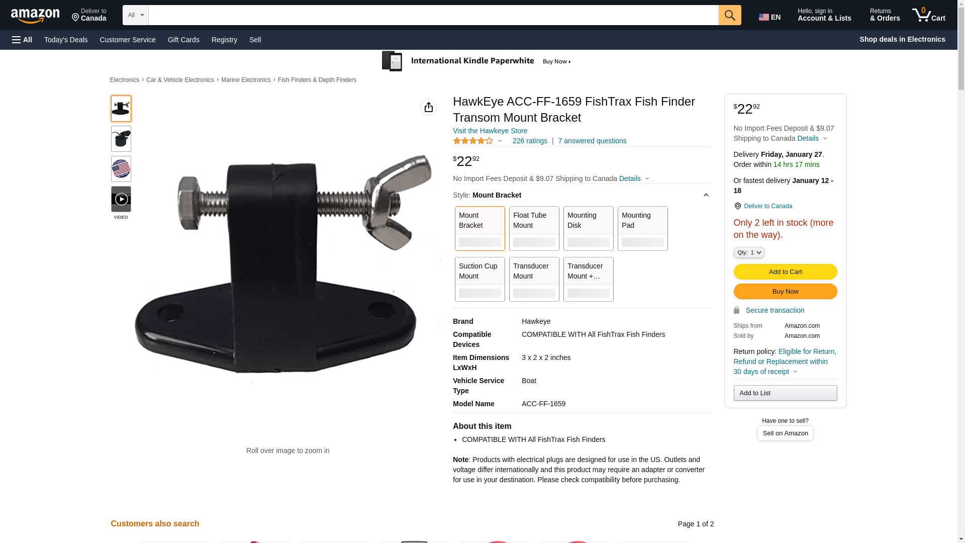 HawkEye ACC-FF-1659 FishTrax Fish Finder Transom Mount Bracket