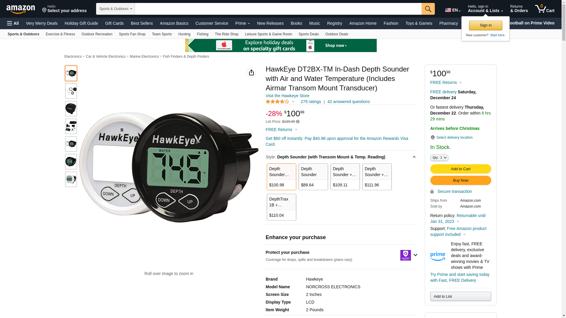 HawkEye D10DX.01T In-Dash Depth Sounder with Air and Water Temperature (Includes Airmar Transom Mount Transducer)