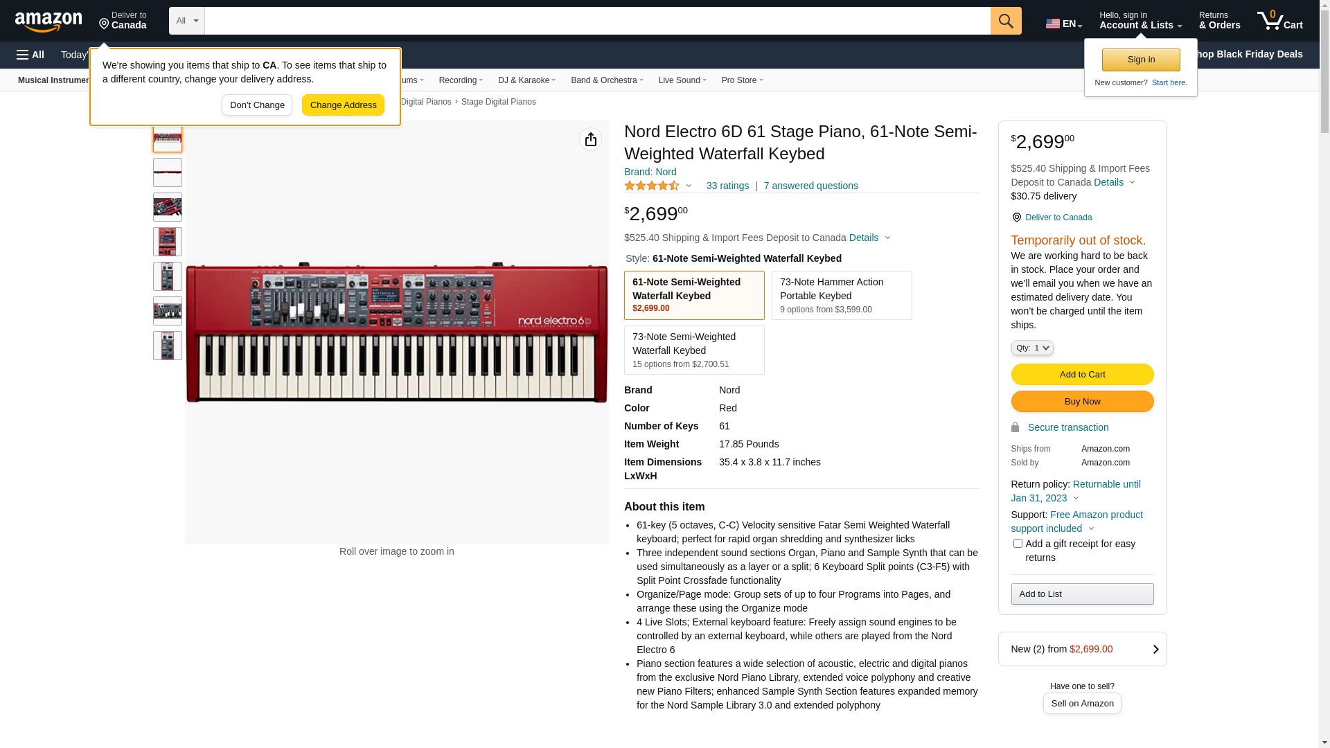 Nord Electro 6D 61 Stage Piano, 61-Note Semi-Weighted Waterfall Keybed