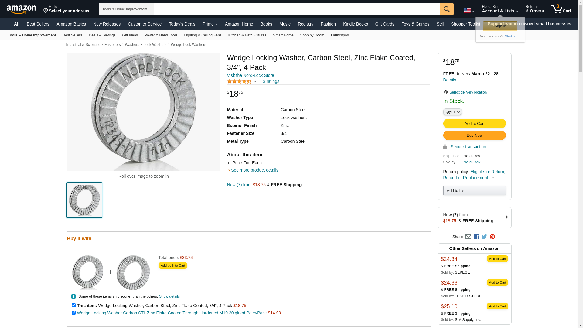 - Nord-Lock wedge-locking washers are made for use with 3/4 inch steel bolts and/or nuts.