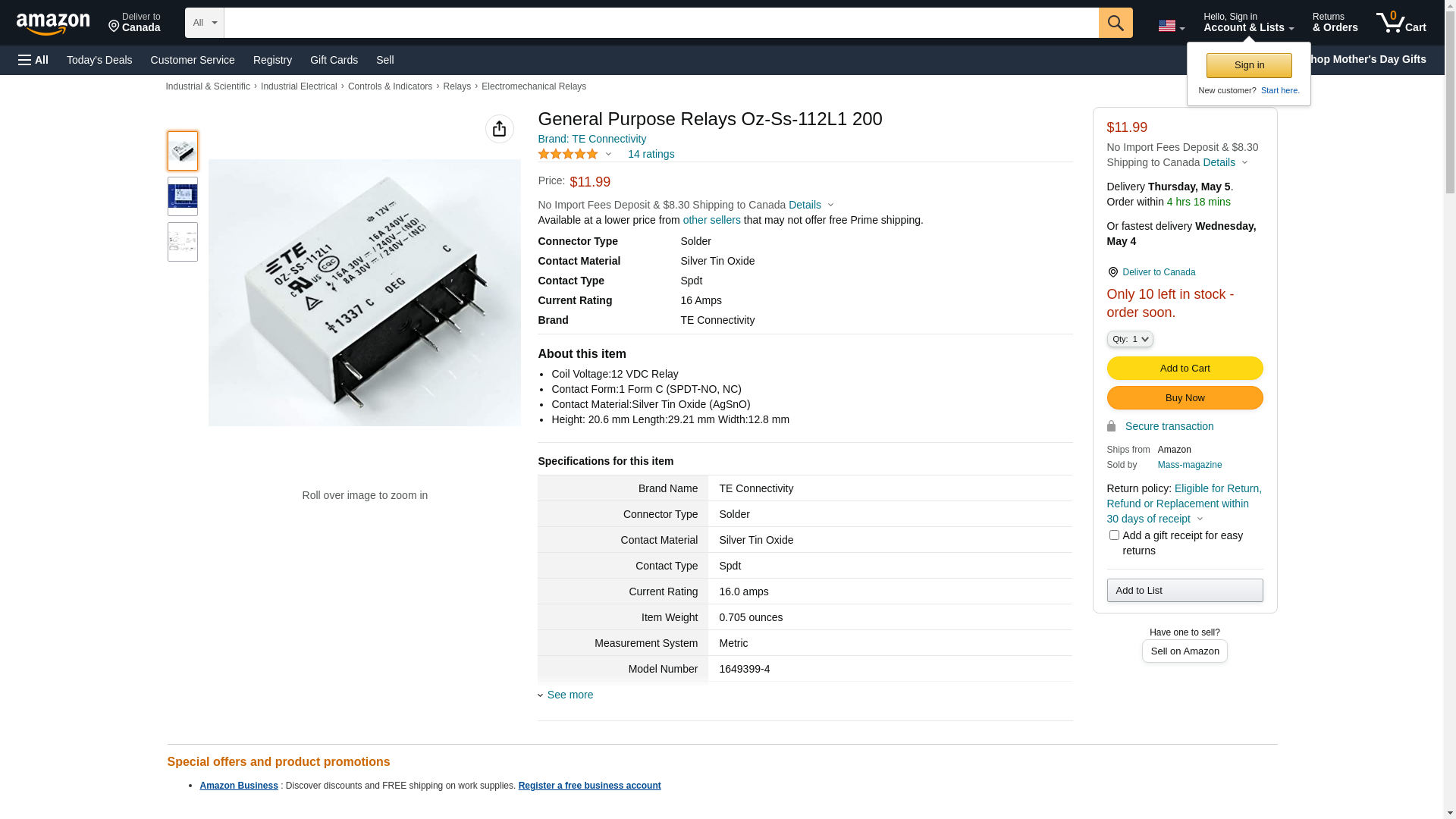 Coil Voltage:12 VDC Relay <br> Contact Form:1 Form C (SPDT-NO, NC) <br> Contact Current Rating:16 A <br> Contact Termination:Solder Pin <br> Mounting Style:Through Hole <br> Switching Voltage:240 VAC, 24 VDC <br> Coil Termination:Solder Pin <br> Coil Type:Non-Latching <br> Coil Resistance:270 Ohms <br> Contact Material:Silver Tin Oxide (AgSnO) <br> Packaging:Tube Contact Form:SPDT (1 Form C) <br> Height: 20.6 mm Length:29.21 mm <br> Power Consumption:540 mW <br> Width:12.8 mm <br> Brand:TE Connectivity / OEG<br>