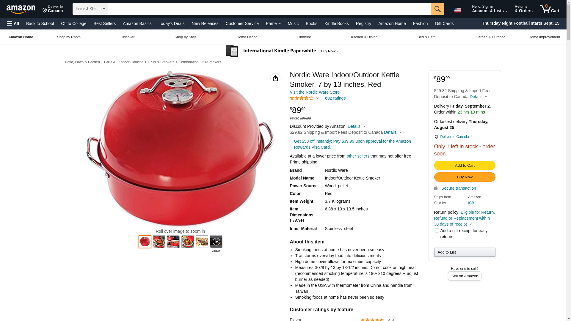 Nordicware Kettle Steel Chrome, Non Stick Smoke 6.88" L X 13" W X 13.5" H