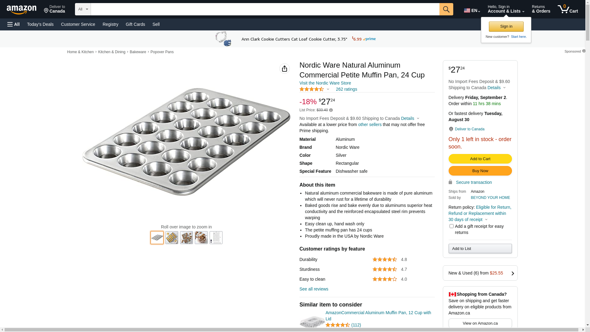 Nordic Ware Natural Aluminum Commercial Petite Muffin Pan, 24 Cup