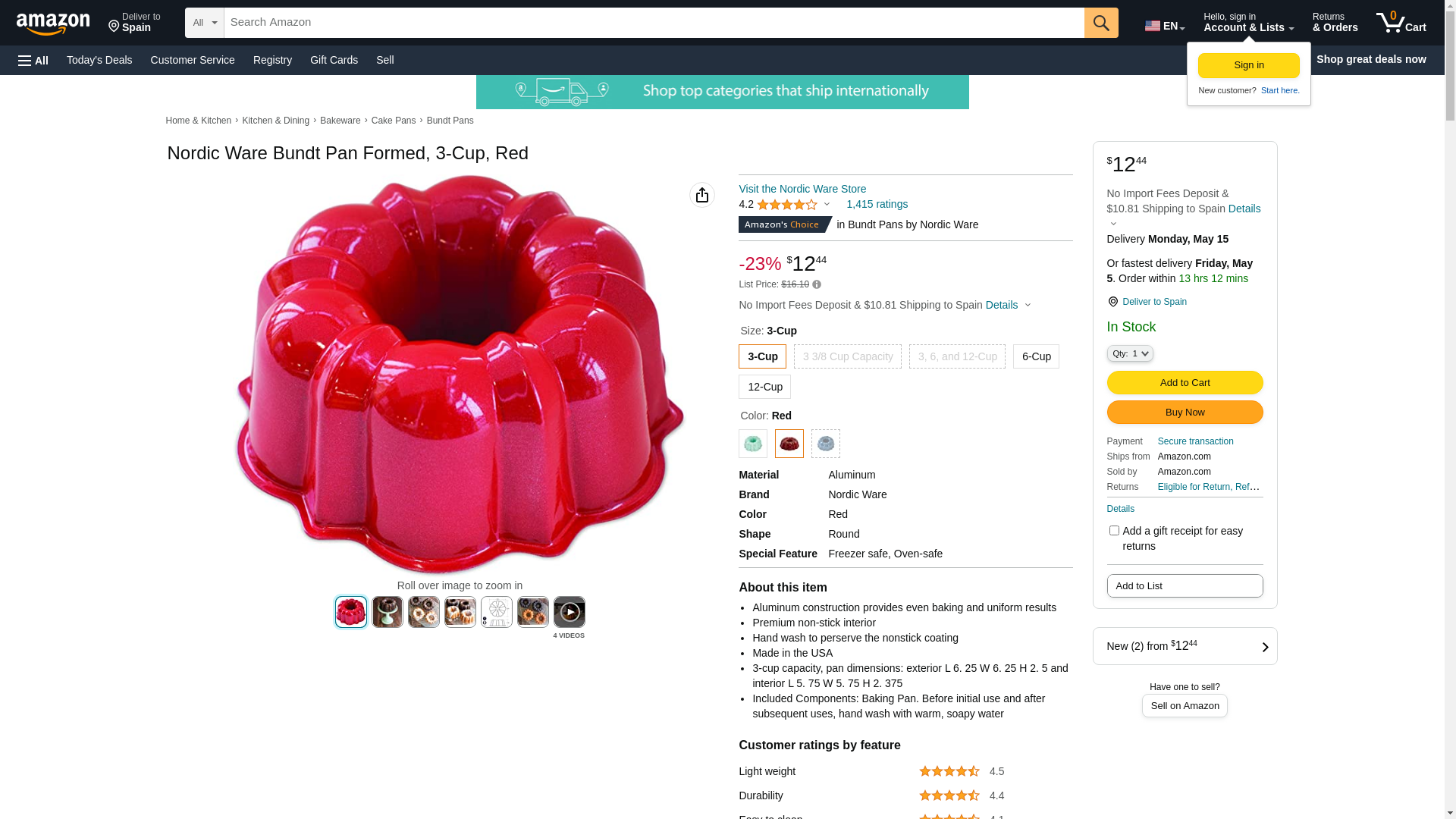 Nordic Ware 50013RD Bundt Pan Formed, 3-Cup, Red: Maxedbuy.com