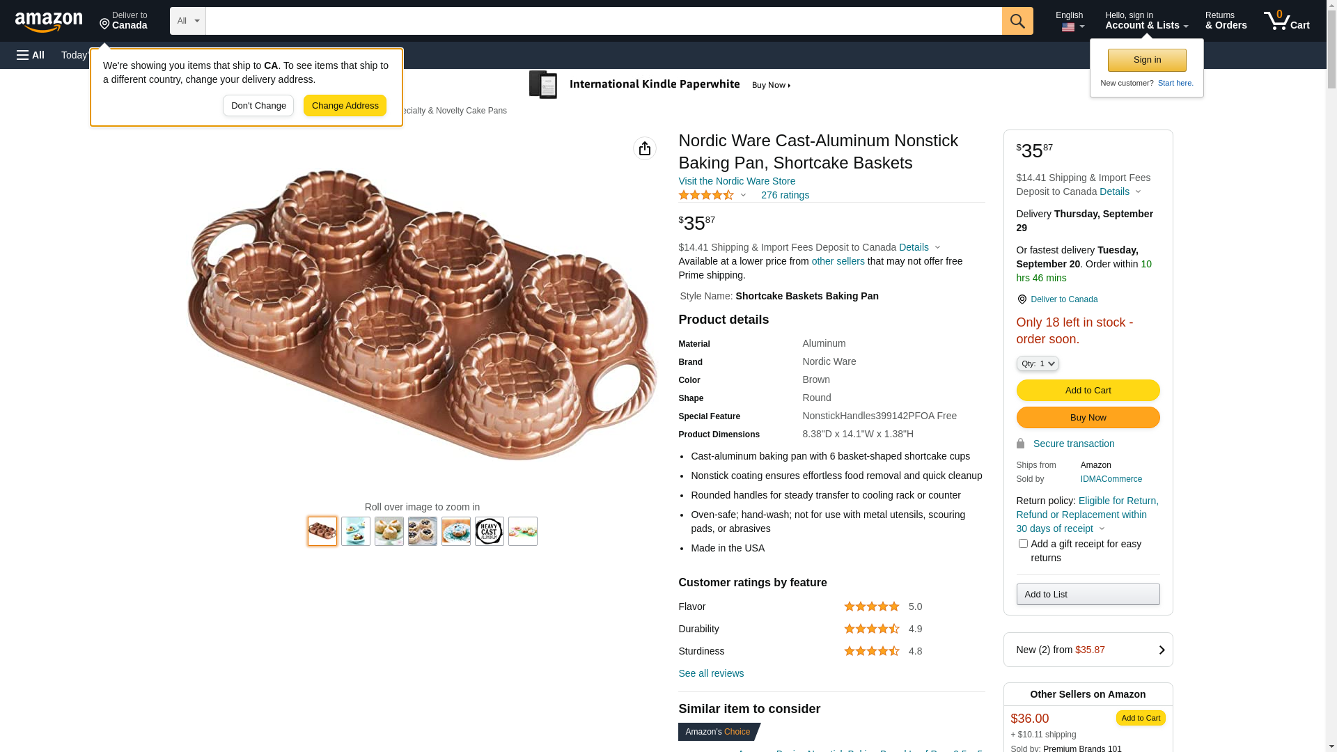 - Cast-aluminum baking pan with 6 basket-shaped shortcake cups
