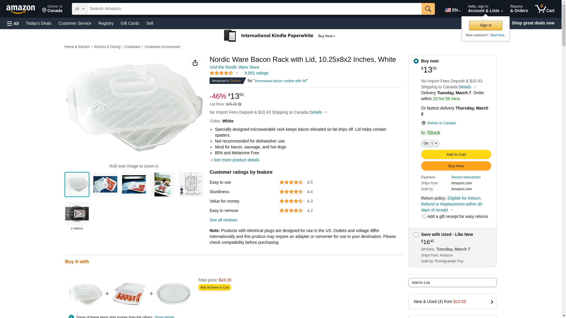 Nordic Ware Bacon Rack with Lid, 10.25x8x2 Inches, White: Maxedbuy.com