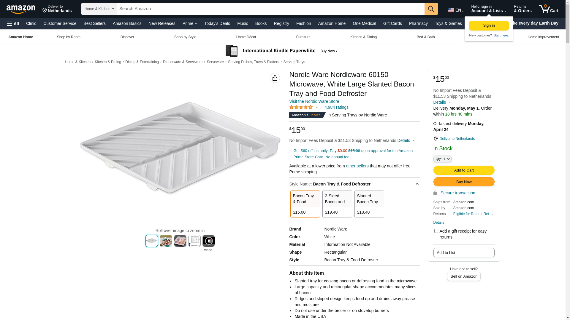 Nordic Ware Nordicware 60150 Microwave, White Large Slanted Bacon Tray and Food Defroster