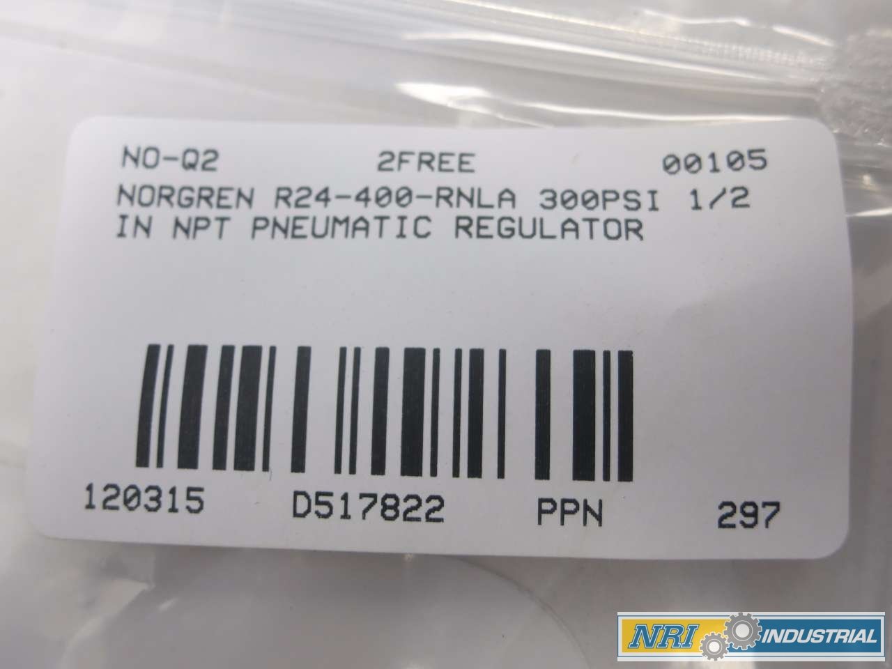 As an Amazon Associate, we earn from qualifying purchases. NEW NORGREN R24-400-RNLA 300PSI 1/2 IN NPT PNEUMATIC REGULATOR D517822 NORGREN . B018Y0PI86 Gallery Attributes Brand name, Manufacturer name, ManufacturerNORGREN dataSourceamazonScraper moq, multiple, tierMinQty11 qtyInStock0 SKUB018Y0PI86 snippetNEW NORGREN R24-400-RNLA 300PSI 1/2 IN NPT PNEUMATIC REGULATOR D517822 Distributor offers SellerSKUMOQIn stockMultiplePrices AmazonB018Y0PI8611