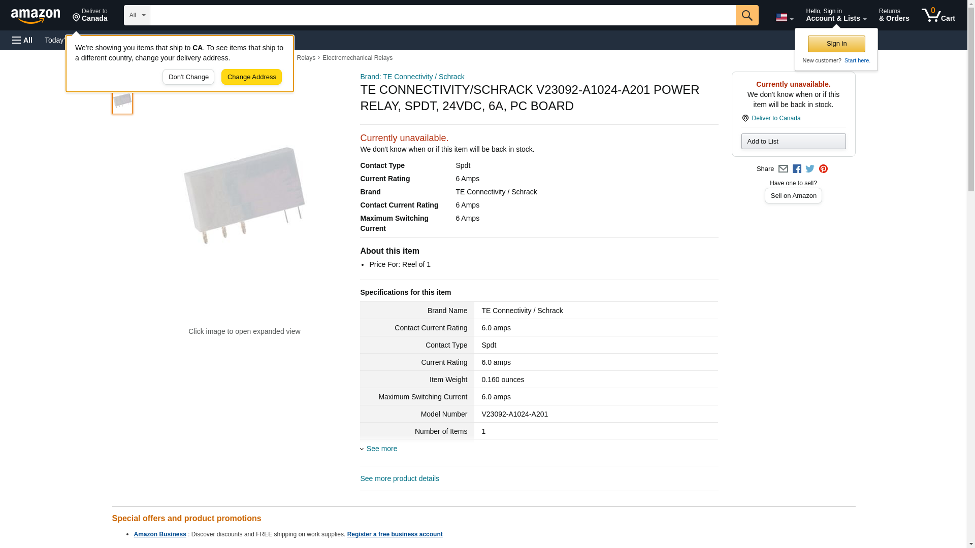 TE Connectivity - V23092-A1024-A201 - Shrack, PCB Relay SPDT 6A 24Vdc,gold plated - Allied Electronics & Automation, part of RS Group