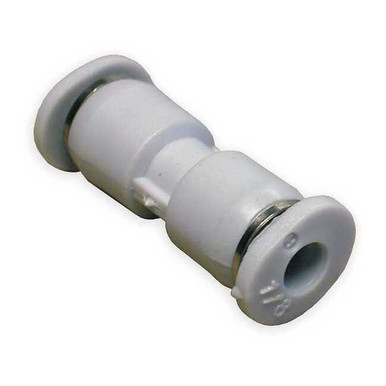 'Straight Union, Tube Fitting Material Polybutylene, Fitting Connection Type Tube x Tube, Tube Size 1/8 In., Max. Pressure 150 psi, Color White, Temp. Range 32 Degrees to 140 Degrees F, Package Quantity 10'