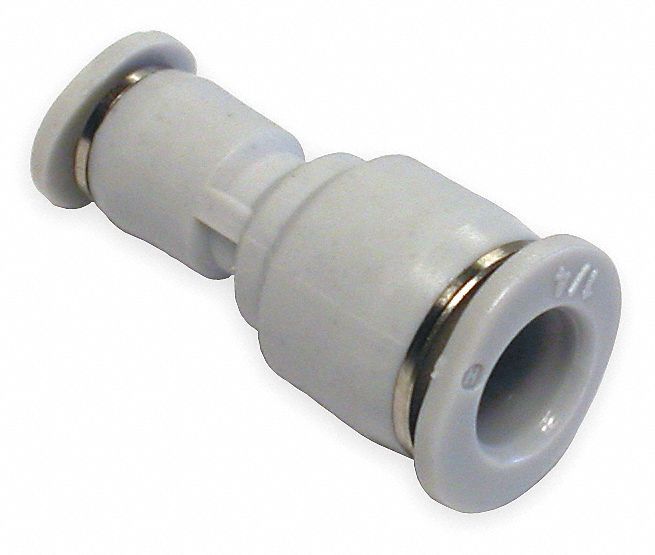 ' Reducing Straight Union, Basic Material Plastic, Body Material Polybutylene, Connection Type Tube, Tube Size 6 x 4mm, Max. Pressure 150 psi, Color White, Temp. Range 32 Degrees to 140 Degrees F, Package Quantity 10 '