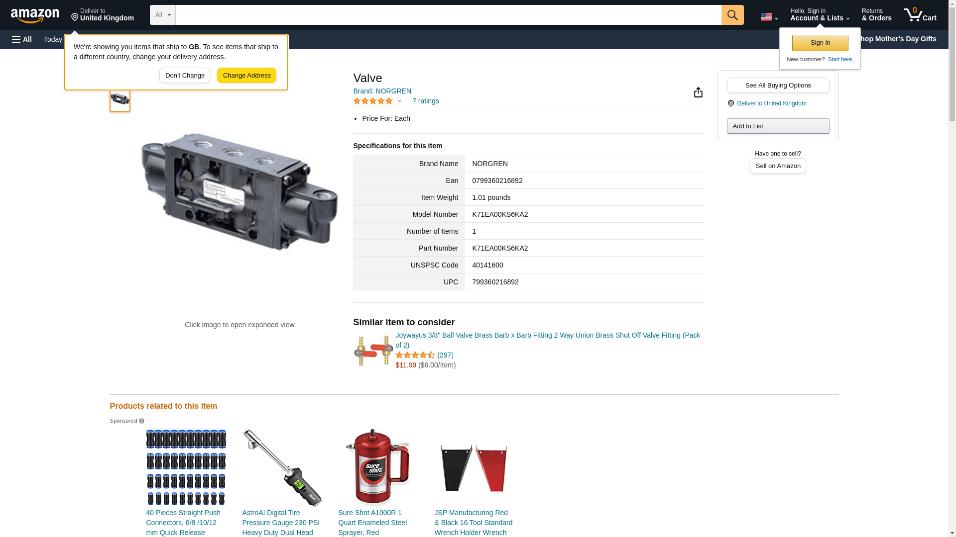 | Feature | Norgren K71EA00KS6KA2, VALVE, 4 WAY, INLINE, AIR SPR, 3/8NPT, 5/2 |