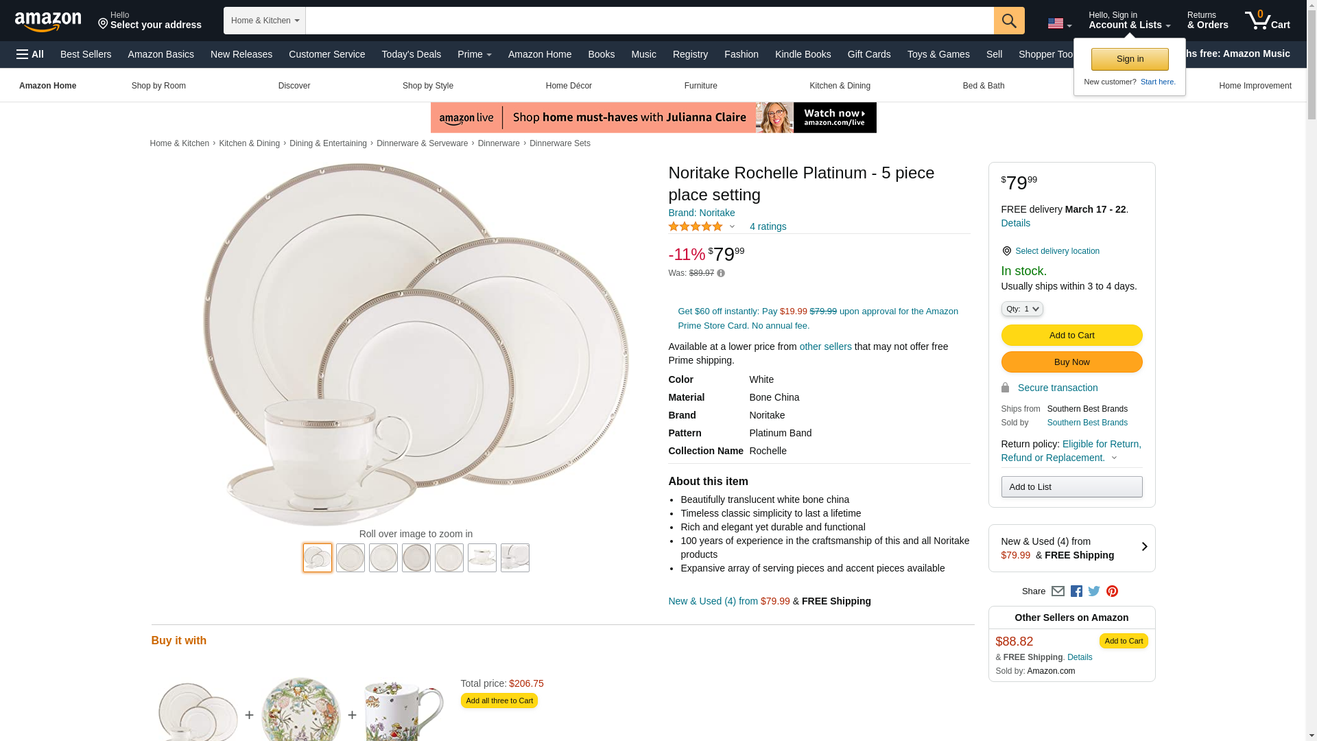Noritake Rochelle Platinum - 5 piece place setting. Beautifully translucent white bone china. Timeless classic simpli...