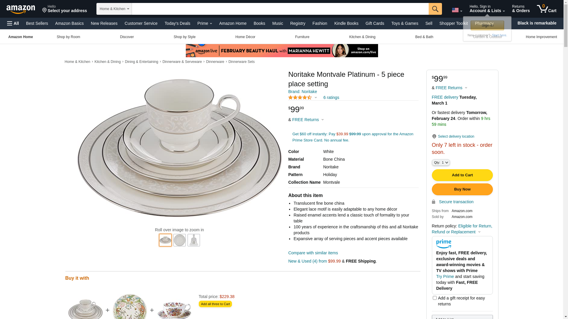 Noritake Montvale Platinum - 5 piece place setting. Translucent fine bone china. Elegant lace motif is easily adaptab...