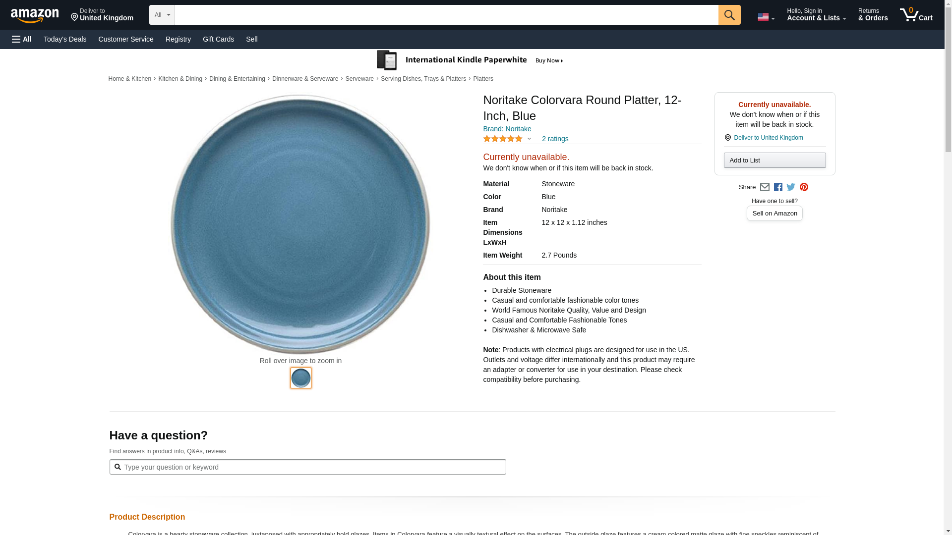 Noritake Colorvara Round Platter, 12-Inch, Blue. Durable Stoneware. Casual and comfortable fashionable color tones. W...