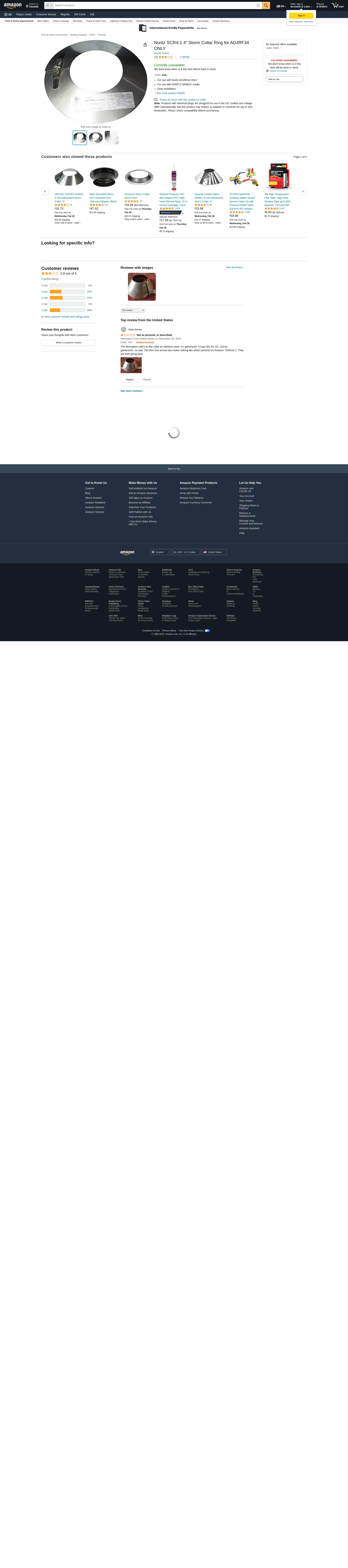 Noritz SCR4-1 4" Storm Collar Ring for ADJRF34 ONLY