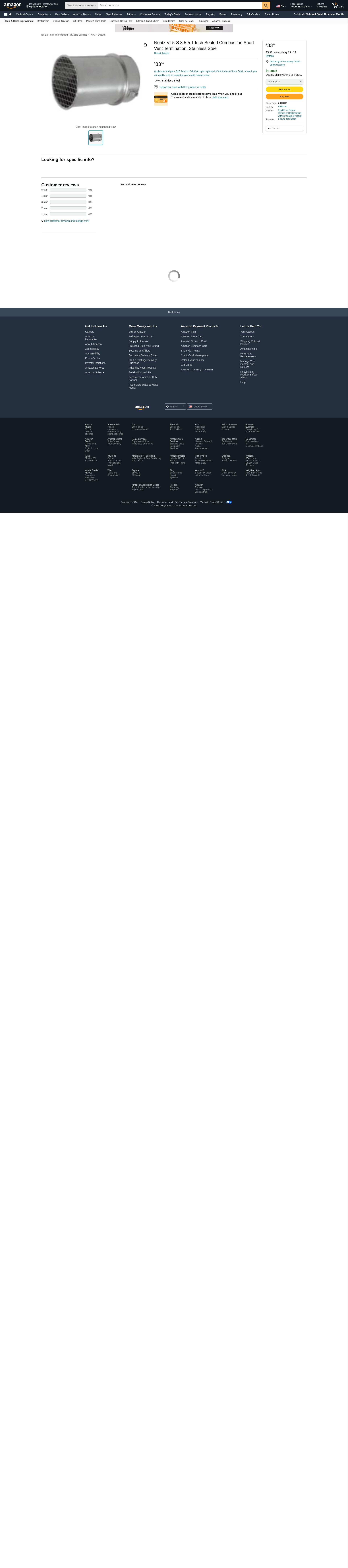 Noritz VT5-S 3.5-5.1 Inch Sealed Combustion Short Vent Termination, Stainless Steel