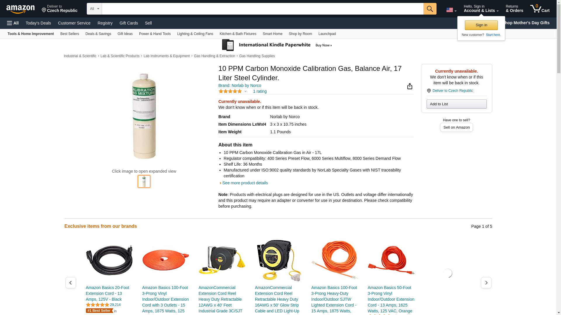 | Feature | 10 PPM Carbon Monoxide Calibration Gas in Air - 17L |