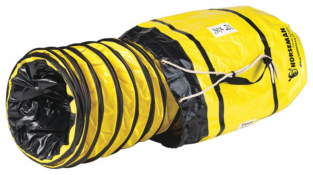 PORTABLE BLOWER DUCT, MOULD/MILDEW/MOISTURE RESISTANT, YELLOW/BLACK, 16 FT X 8 IN