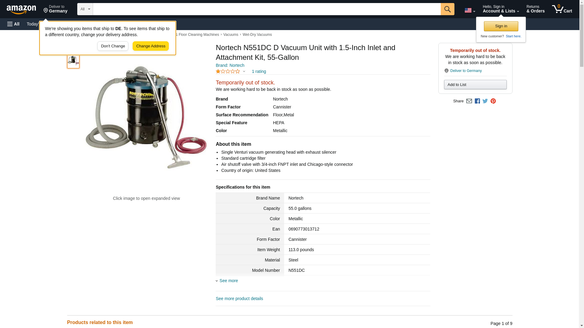 Nortech N551DC D Vacuum Unit with 1.5-Inch Inlet and Attachment Kit, 55-Gallon