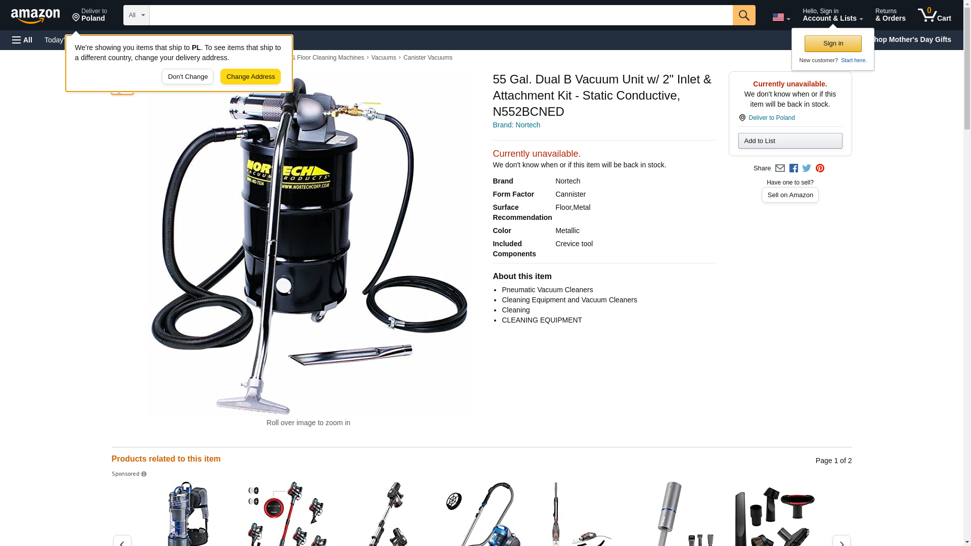 55 Gal. Dual B Vacuum Unit w/ 2" Inlet & Attachment Kit - Static Conductive, N552BCNED - Item Features: Vacuum generating head with standard cartridge filter, Drum and drum dolly, Metal wet/dry floor tool (12" wide) with 4' wand, 24" long metal crevice tool, and 3/4" x 20" air supply hose with fittings. Non-Returnable Item.