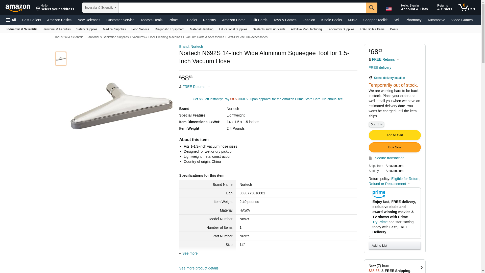 <ul> <li>Item Type: Squeegee Vacuum Floor Tool</li> <li>Brand: NORTECH</li> <li>Manufacturer Part Number: N692S</li> <li>Made in the United States</li> </ul>