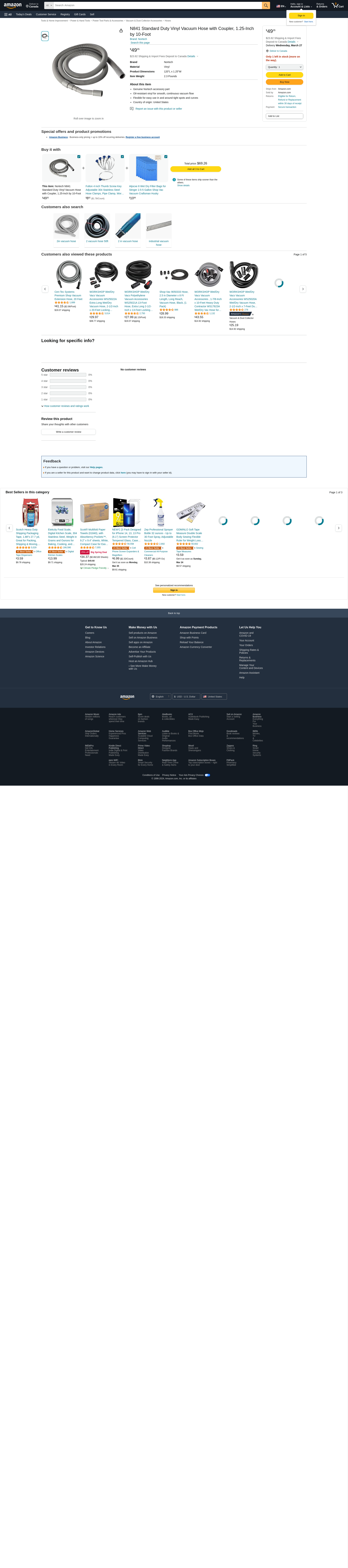 Nortech N841 Standard Duty Vinyl Vacuum Hose with Coupler, 1.25-Inch by 10-Foot