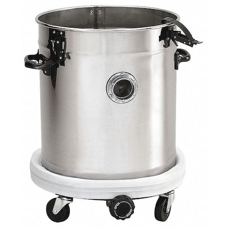 Nortech N881 Stainless Steel Canister with Lid Clamps, Dolly and Liquid Drain Valve, 8-Gallon