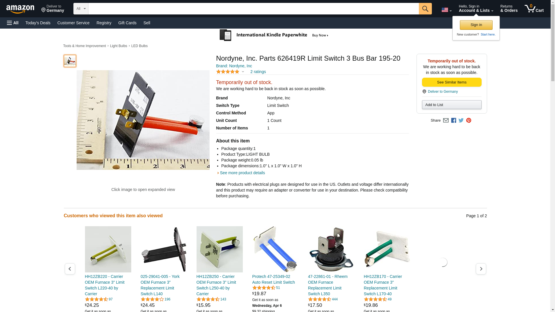 Nordyne, Inc Nordyne, Parts 626419R Limit Switch 3 Bus Bar 195-20