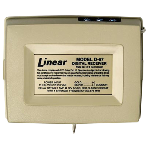 As an Amazon Associate, we earn from qualifying purchases. Nortek Security and Control D-67 Linear Electrical Accessories Nortek Security and Control . D-67 Gallery Attributes Brand name, Manufacturer name, ManufacturerNortek Security and Control CategoryIdL3Electric Locks CategoryL1Windows and Door Hardware CategoryL2Door and Window Security Hardware Extra Product NameNortek Security and Control D-67 Linear Electrical Accessories atoms, moq, multiple, tierMinQty11 extendedQty, qtyInStock0 MPND-67 qtySourceupdateFromUrlEntry snippet<p>1-Channel Receiver, Operates on 11-24 VDC or 12-16 VAC Power, One Channel, One Form "C" Relay Output, 256 Discrete Codes, Four Second Relay Activation Time, 303.875 MHz RF Frequency</p> tierPrice184.93 Distributor offers SellerSKUMOQIn stockMultiplePrices DK HardwareD-67111 @ $84.93