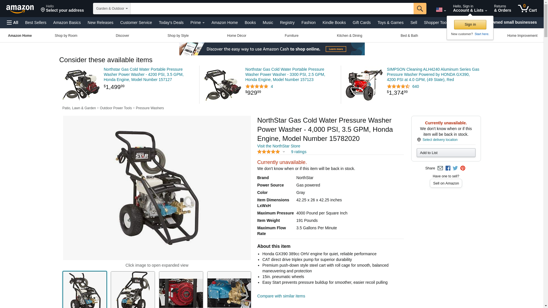 NorthStar Gas Cold Water Pressure Washer Power Washer - 4,000 PSI, 3.5 GPM, Honda Engine, Model Number 15782020