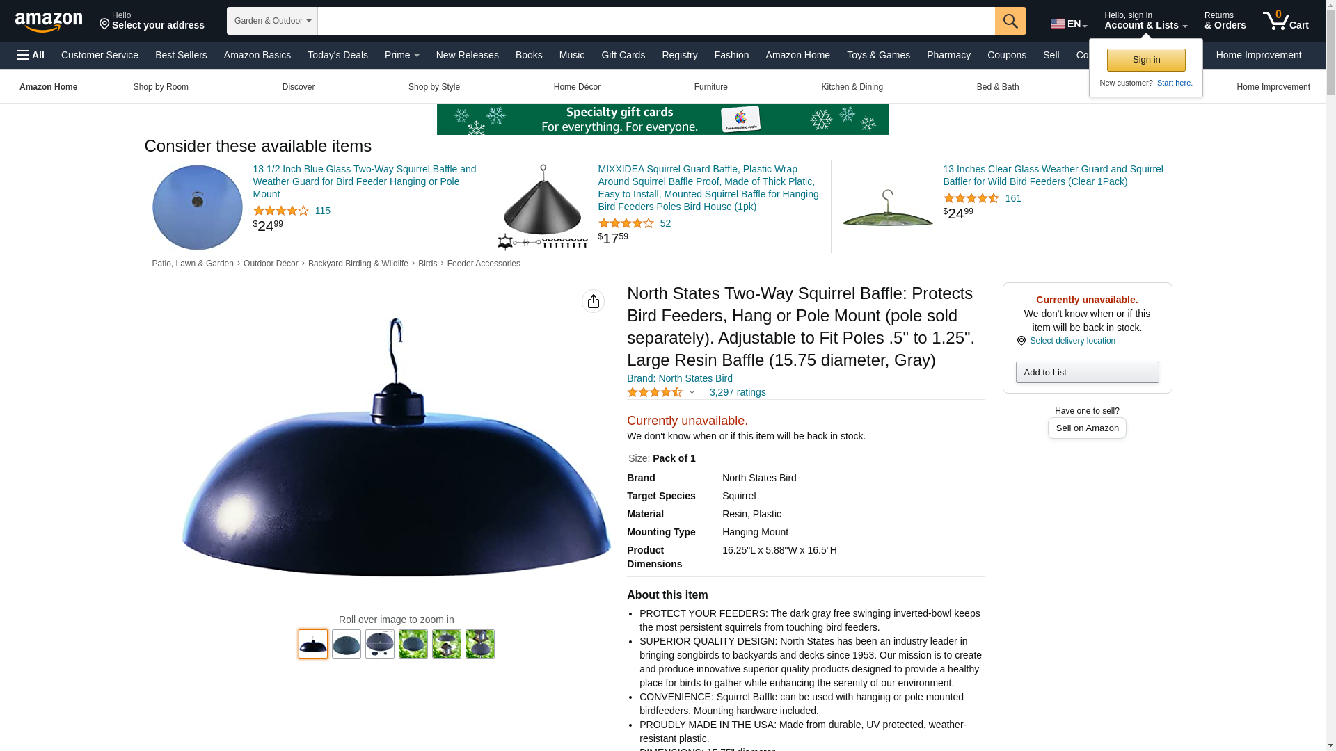 | Feature | Protects birdfeeders from squirrels |