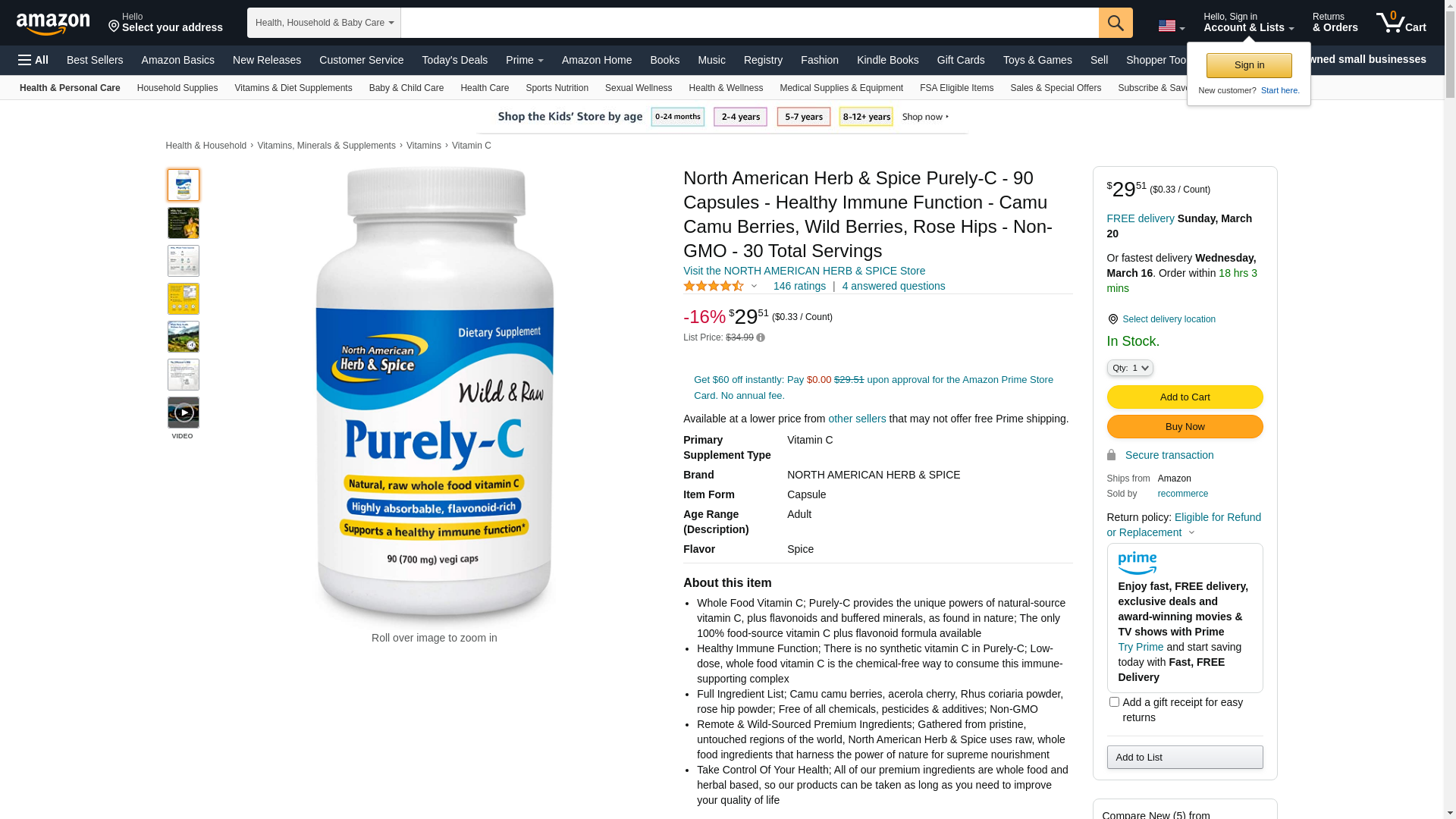 North American Herb and Spice, Purely-C Capsules, 700 Mg 90-Vegi Caps