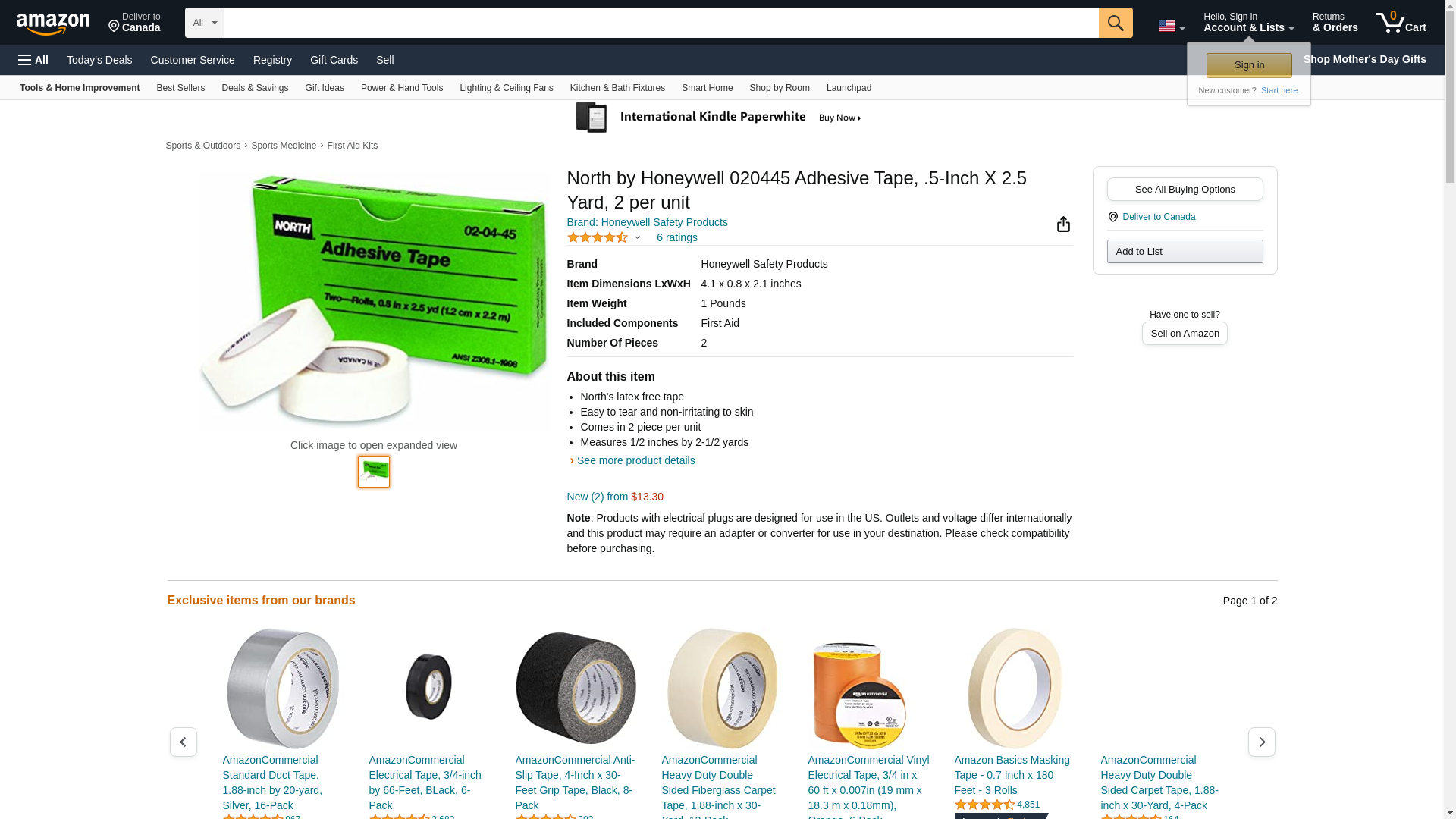 North by Honeywell 020445 Adhesive Tape, .5-Inch X 2.5 Yard, 2 per unit