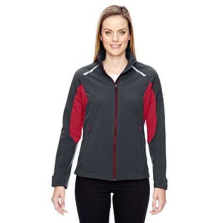 North End Sport Ladies Laser Stitch Soft Shell Jacket, Carbon w/Olympic Red, XL