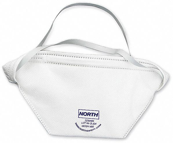 | Feature | <b>Price For:</b> Each <b>Respirator Shape</b>: Flat-Fold <b>Item</b>: Disposable Particulate Respirator <b>Fluid Resistant</b>: No <b>Face Seal</b>: None <b>Color</b>: white <b>Headstrap Type</b>: Single, Non-Adjustable <b>Filter Class</b>: N95 <b>Individually Packaged</b>: Yes <b>Nuisance Odor Removal</b>: None <b>Nose Clip</b>: Yes <b>Mask Size</b>: Universal <b>Standards</b>: Niosh Approved <b>Exhalation Valve</b>: No |