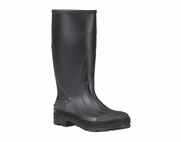 SAFETY BOOTS, MEN'S/KNEE/ERGONOMIC/WATERPROOF/SAFE/STEEL TOE, BLACK, SIZE 13/15 IN H, PVC/EVA/STEEL
