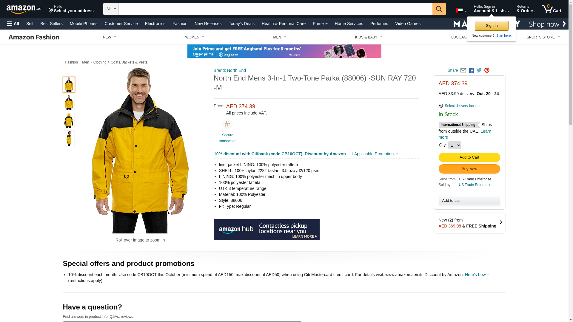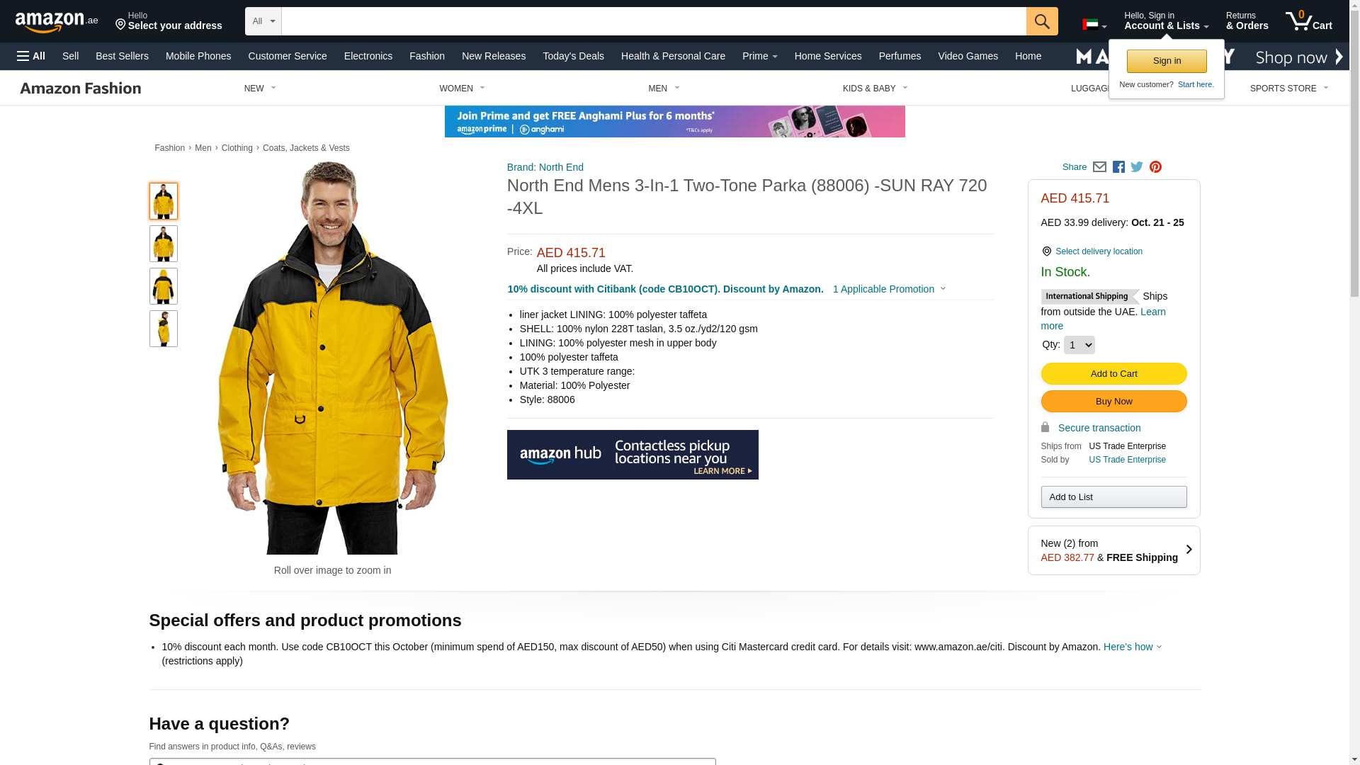 North End Men's 3-In-1 Two-Tone Zip-Off Hood Parka, SUN RAY 720, XX-Large