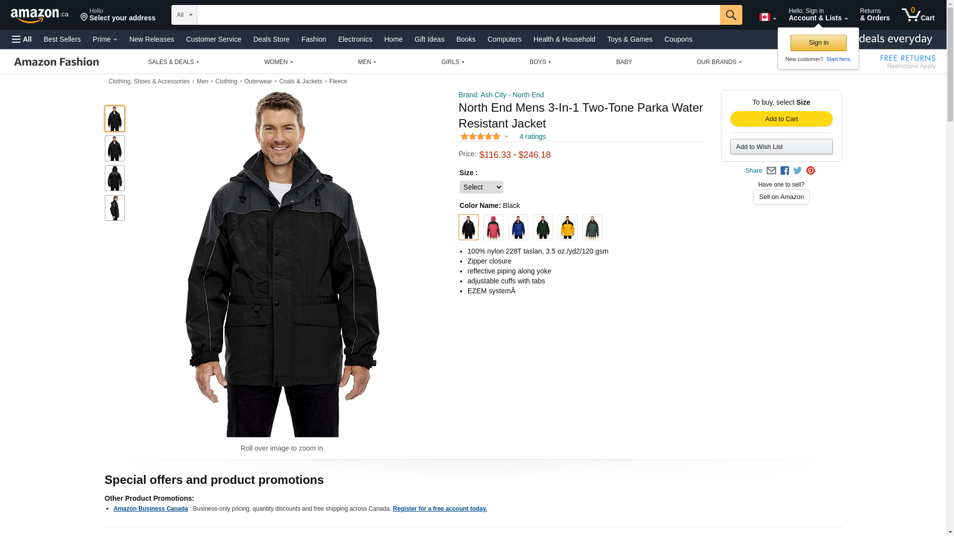 North End Men's 3-In-1 Two-Tone Zip-Off Hood Parka, Black, Small